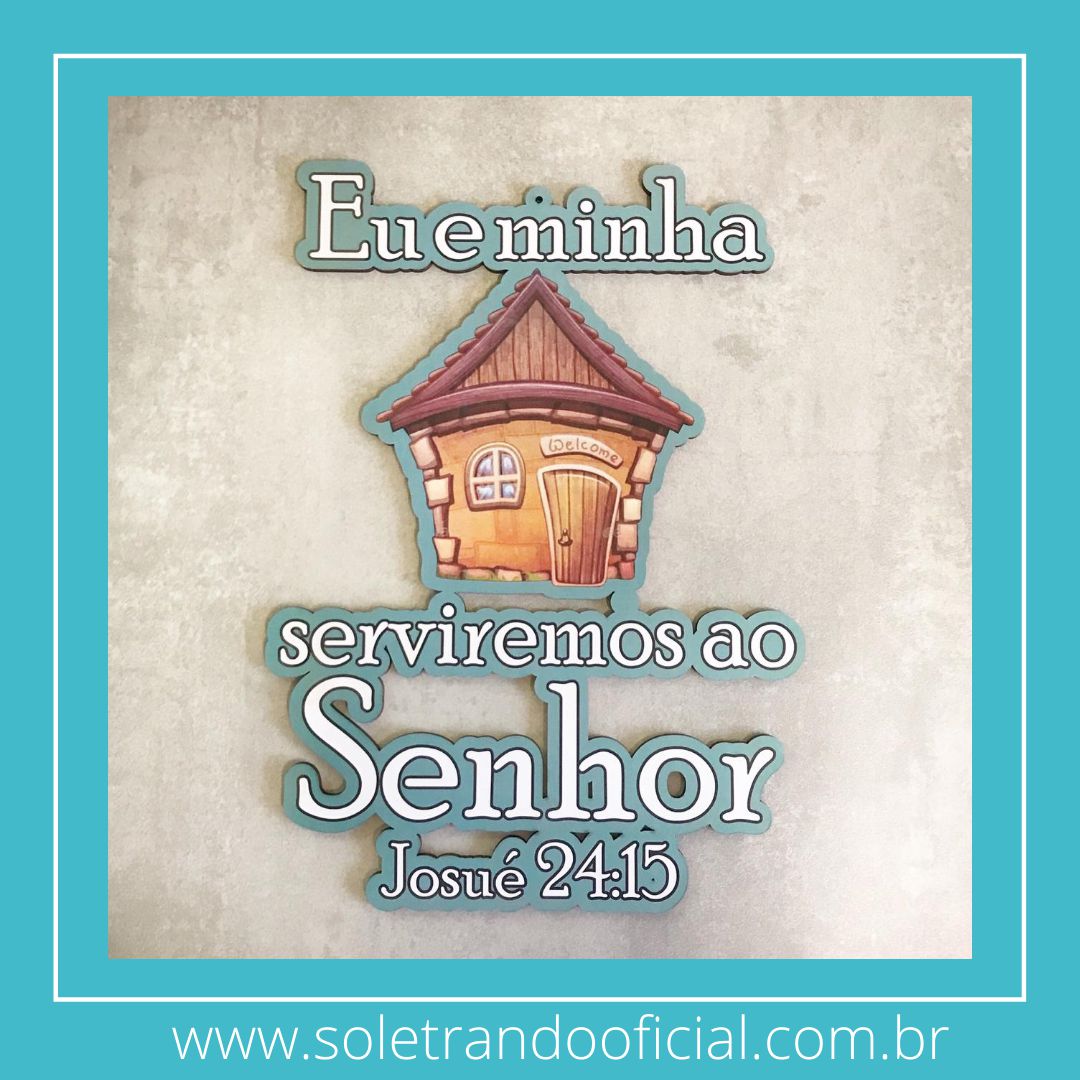 Placa decorativa com a frase : Eu e minha casa serviremos ao senhor