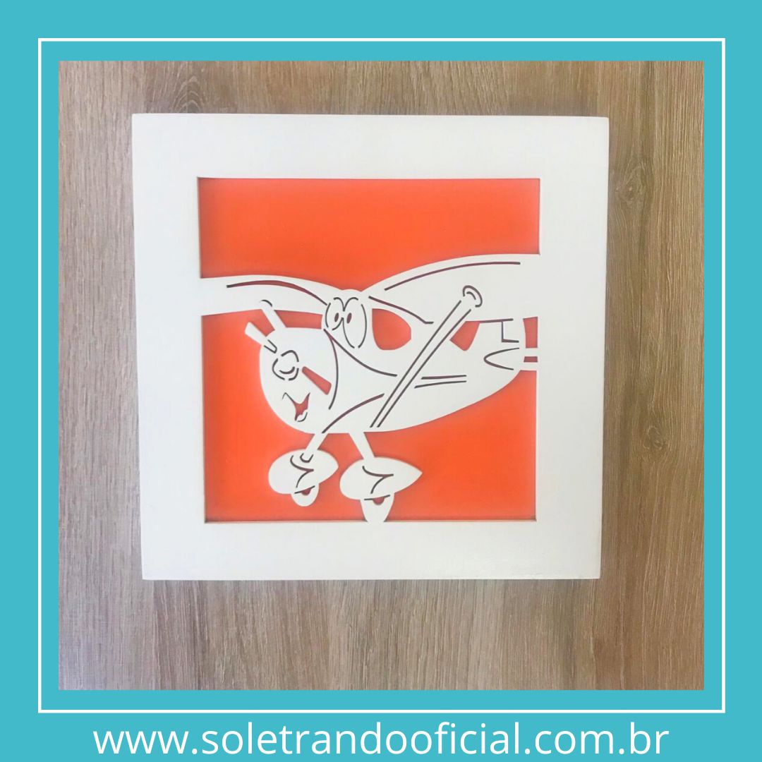 Quadrinho infantil com ilustração de avião com fundo laranja